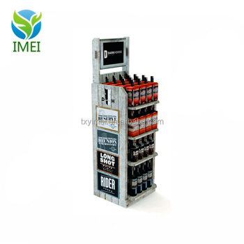 Conception personnalisée Étagère de présentation des boissons sur pied en bois pour bouteilles au détail